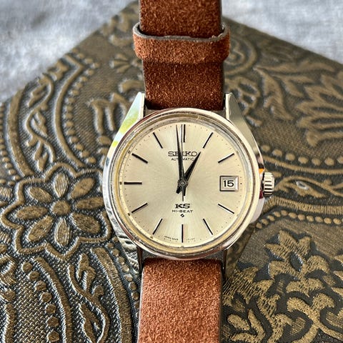 Selger en svært pen King Seiko 45-8010 Chronometer, produsert april 1970. Dette er en klassisk high-beat King Seiko med manuelt verk – kjent for presisjon, finish og kompromissløs japansk ingeniørkunst fra Seikos storhetstid.