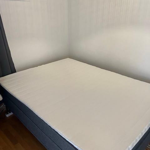 MERK: Den ene planken i fotenden/hodeenden er bristet, det gjør at sengen kan knirke noe, men det merkes ikke på selve madrassen.