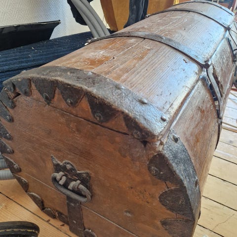 Eldre kiste med utskårne detaljer