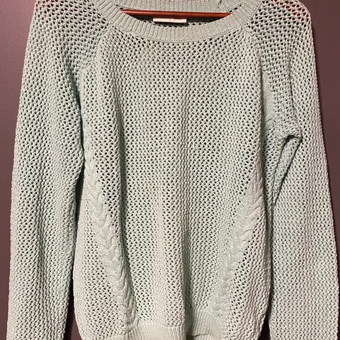 Pent brukt genser, str. XS, men oversize, så ganske romslig og lang. 80% ull. Splitt på sidene.