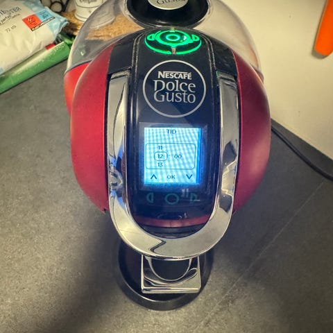 Illy X1 espresso kaffemaskin i hvit farge. Maskinen har en klassisk design med kromdetaljer og manuell brygging. Egnet for hjemmebruk til å lage espresso og andre kaffedrikker.