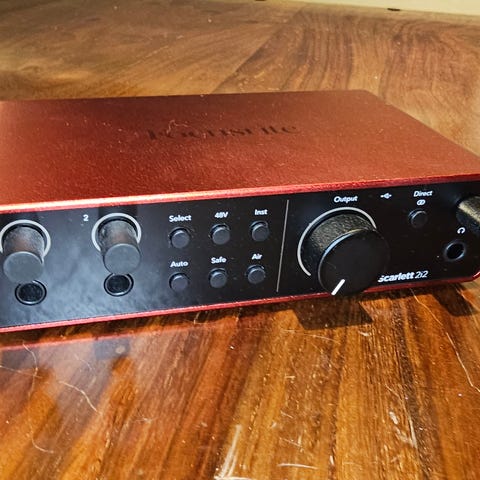 Selger en Behringer Xenyx Q502USB i god stand fordi jeg ikke trenger å mikse noe lengre, så jeg har nedskalert til en Focusrite Scarlett Solo for mikrofonen min isteden.