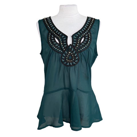 Blusen er pent brukt. Str. L, men god i størrelsen. Brystmål fra side til side er 57 cm, og hel lengde fra skulder og ned er 57 cm. 98% viskose og 2% metalltråd.