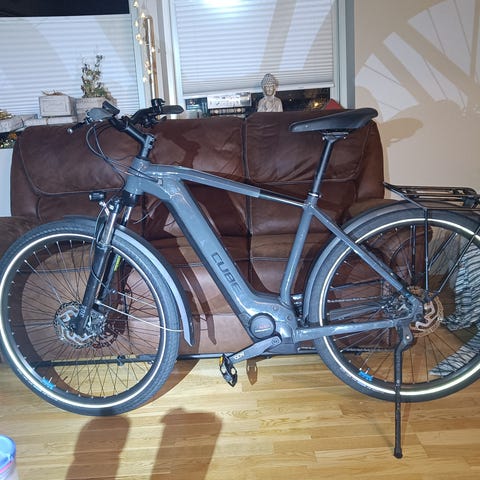 Nytt bakdekk høsten 2025. Ny kontrollpanel på garanti da sykkelen hadde gått ca. 2700km. Den har gått 964km etter panelbytte. Sykkelen er godt brukt og har en del bruksmerker, men batteri og motor fungerer bra. Ingen skader på ramme bare i lakk