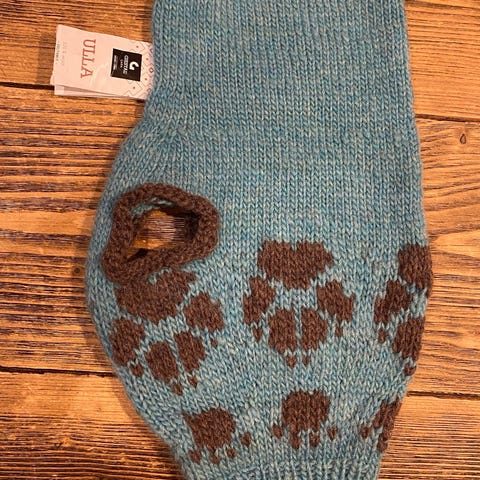 Hundedekken i beige farge. Passer for hunder mellom 6 og 10 kg og er laget for å gi varme og komfort. Bare prøvd men for stor.
