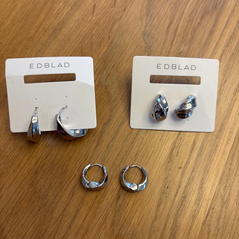 Nye Redondo Sparkle Studs fra Edblad. Vakre sølvbelagte øredobber i resirkulert messing, 16x26mm. Bredde 26mm på det bredeste. Nypris kr 700.