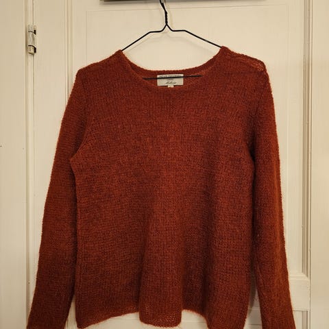 Dear Dharma genser i oransje farge, størrelse S. Laget av materiale i mohairull, Brukt 1 gang. 400.-