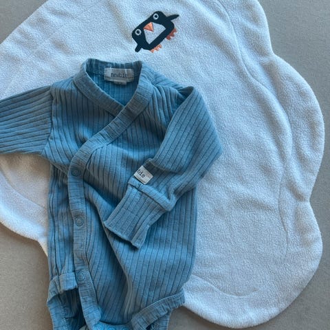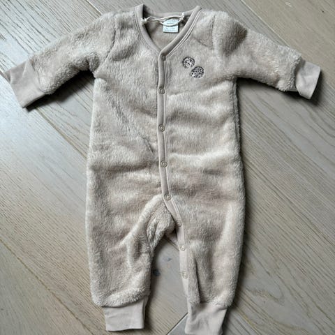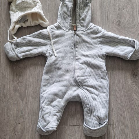 Vinterbaby? Da passer dette settet med en myk bamsedrakt og votter og lue perfekt. Str 56, men er romslig.