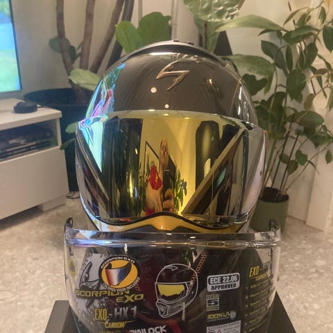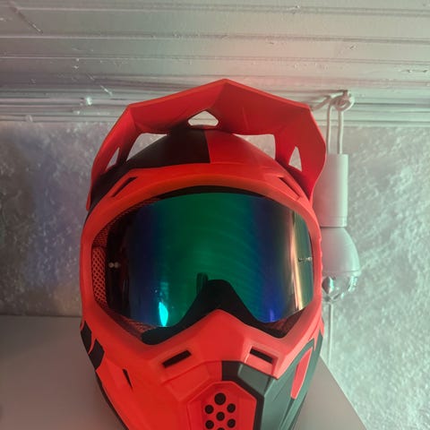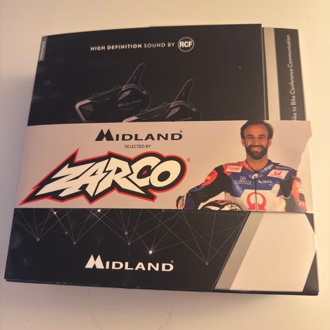 Raven Airborne Evo motorsykkelhjelm i svart og oransje farge. Hjelmen har ECE R22.05 godkjenning og er designet for motorsykkelbruk. Brillene følger med på kjøpet. Midland BTX2 Pro S