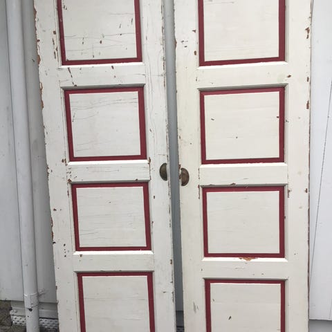 Jeg har begynt på restaurering med malingsfjerner men kom ikke i mål. Krever derfor noe oppussing for døren kan males.