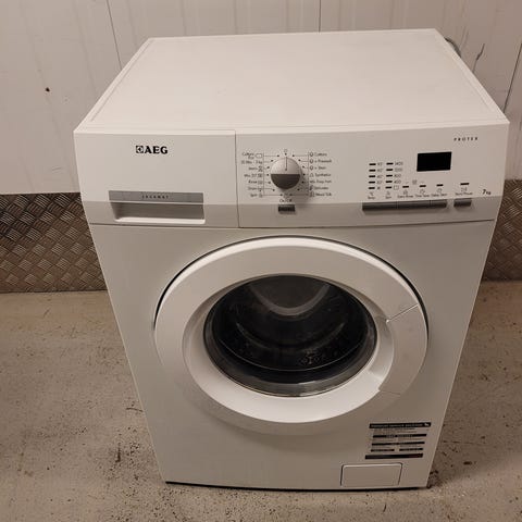 Vaskemaskin fra AEG. Noen merker her og der, men fungerer fint og er enkel i bruk. Selges som den er.