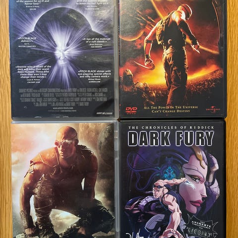 To DVD-filmer med Vin Diesel: Riddick (Director's Cut) og Pitch Black. Begge filmer er science fiction og action, med fokus på karakteren Riddick. DVD-ene inneholder original versjon og ekstra materiale.