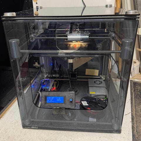 Selger en godt brukt Creality CR-10. Brukte den en del før,men nå hadde den stått i 2 år før jeg prøvde å bruke den. Det gikk veldig fint i starten, men til slutt så satt filament seg fast i røret. Regner med at man trenger nytt rør. Tipper det er fordi plasten var for gammel og sprø. Trenger nå litt kjærlighet fra en som ønsker å fikse litt 😊