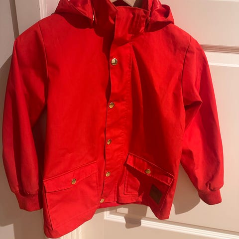 Mini Rodini barn jakke i størrelse 110, designet for jenter. Jakken er rosa og laget av polyester. Den har hette og flere lommer, egnet for bruk i kaldere vær.