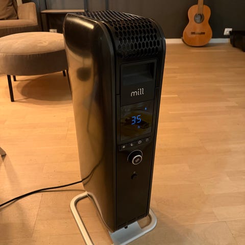 Fint holdt ovn av merket Mill. 900 watt. Godkjent til bade/våtrom; IPX4 sertifisert. Nypris 1700. Veggfeste følger med.