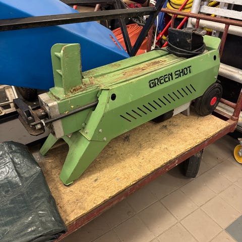 Selger en pent brukt vedkløyver fra Biltema med 6T klyvkraft og kubbelengde på maks 52cm.