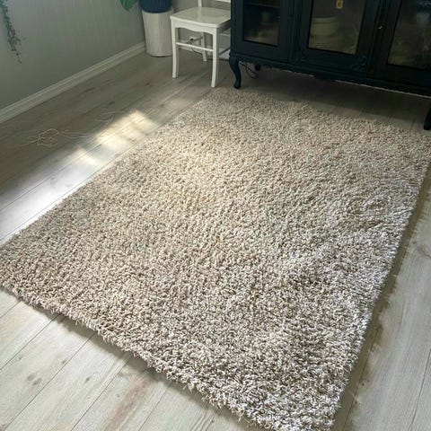 Selger et godt brukt melert/sjattert greige teppe fra Skeidar. Kommer fra dyre- og røykfritt hjem, men med to småbarn, så noen flekker kan man nok ane på teppet (kan sannsynlig fjernes ved vask). Nypris 4000.