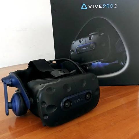 Rå VR gaming headsett - Vive Pro 2 Full Kit inneholder et Vive Pro 2 - headset og de nyere SteamVR 2.0 Lighthouse -basestasjonene, samt kontrollere. KJØPT NY FOR KR 15.000 PÅ KOMPLETT