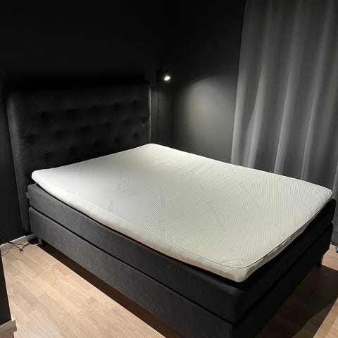Overmadrassen er tempurmadrass og er en drøm å sove på. Sengen er perfekt for singel, eller veldig gode venner 😉