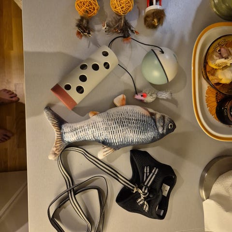 Diverse utstyr til katt, se beskrivelsene på bildene.