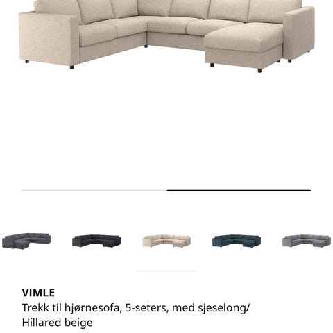 Selger en Vimle toseters sofadel fra Ikea, i fargen Hillared beige.
