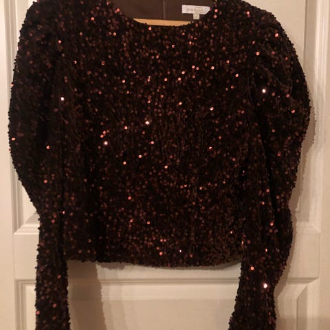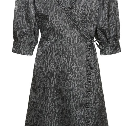 H&M festkjole i svart farge med litt glitter i, størrelse XL. Laget av polyester materiale. Langermet design med en drapering på siden.