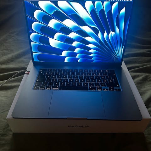 Apple MacBook Air . Kjøpt for litt over et år siden men er svært lite brukt. Selges siden den er så lite i bruk. Ladeledning følger ikke med (katten satte tenne i den så den sluttet å funke) men kan fint lades med samme lader som iphone 16. vil bli satt tilbake til fabrikkinnstillingene ved salg.