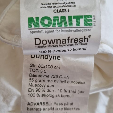 Selger pent brukt Dozy dunpute (40x60) og dundyne (80x100). Kun brukt på overnatting. Ingen hus med røyk eller dyr. Ingen anmerkninger på produktene.