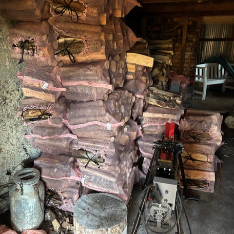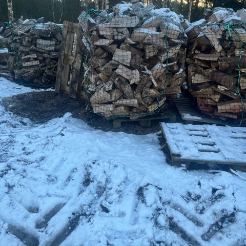 Målt fuktighet: 12-18%. Perfekt for fyring med det samme. Det er så tørt som det er mulig å få det ved tørking ute under tett tak.