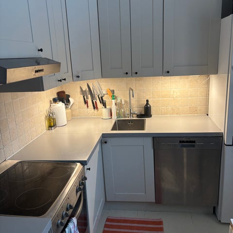 Godt brukt kjøkken med hvitevarer gis bort, alt i ett eller delt opp. Hvitevarer: integrert kjøle- og fryseskap, mikrobølgeovn, kombo kokeplater/komfyr/mini oppvaskmaskin (nederste del under komfyren). Den siste kombo-enheten er vi usikre på om virker (særlig oppvaskmaskin-delen). Alt selges som det er. Må demonteres og bæres ut selv fra høy annen etasje uten heis.