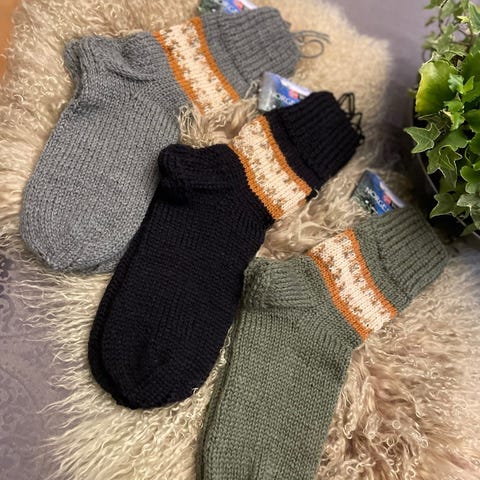 Ull sokker antagelig strikket i alpakka, men husker ikke hvilket garn ,så selges billig.