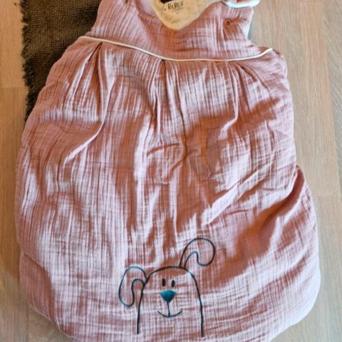 Fleecesovepose fra Rêve d’Anaïs, egnet for bruk i babyens første bilsete. Litt misfarging rundt hodet, men ellers i god stand.