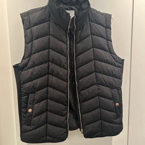 Vest brukt en gang fargen grønn, størrelse 38 for damer. Laget av polyester materiale. Egnet som ytterplagg for utendørs bruk.Farven er mørk grønn.