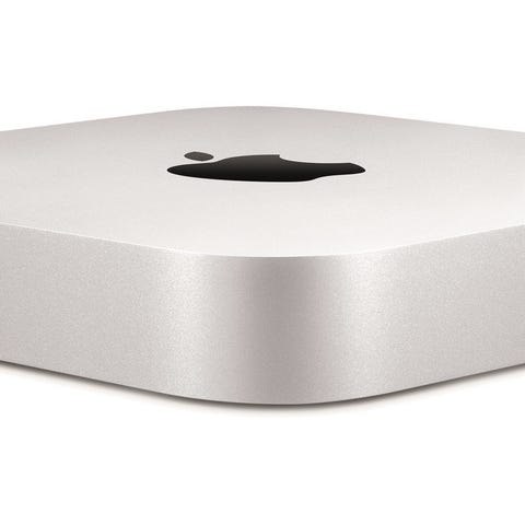 Apple Mac mini, kompakt design med flere tilkoblingsporter på baksiden.