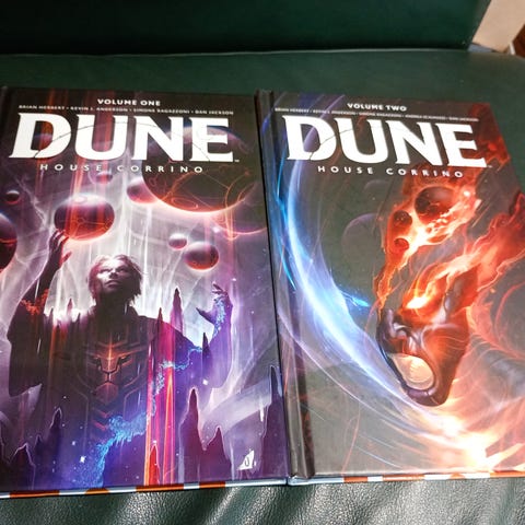 Selges siden jeg har 2 av den. Dune graphic novel med fine illustrasjoner. Bok med slipcase. Liten feil på siden av slipcasen men boken er ellers fin. Ikke lest i