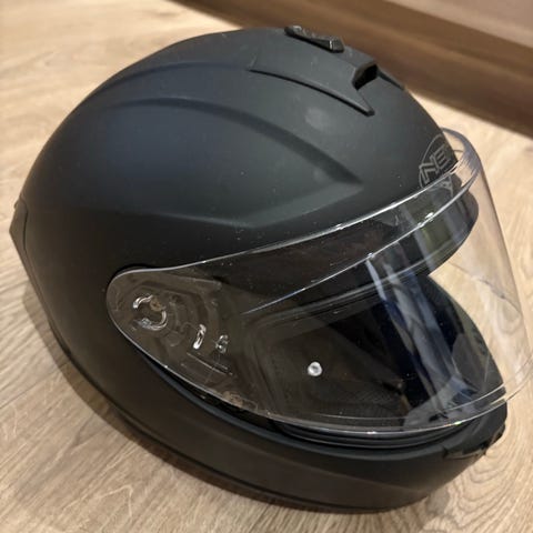 Nexx Racing motorsykkelhjelm i svart farge. Hjelmen har en klar visir og polstret innside med justerbar hakestropp for sikker passform. Har også solbriller og innebygd Bluetooth hvor du kan koble opp til tlf for musikk og å ringe. Aldri mistet i bakken og er pent brukt.