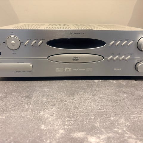 Yamaha AV-forsterker og DVD-spiller med flere tilkoblingsmuligheter. Forsterkeren har justeringsmuligheter for lyd og flere innganger/utganger for tilkobling av eksterne enheter. DVD-spilleren støtter standard DVD-formater. Selges samlet.