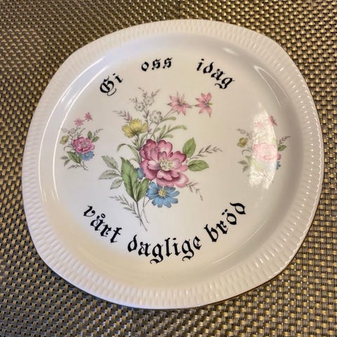 Søkeord Figgjo Flint Norway Gi oss i dag vårt daglige brød fat brødfat serveringsfat 29x19 cm vintage 1950-tall norsk design porselen retro