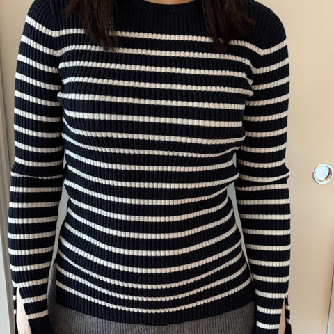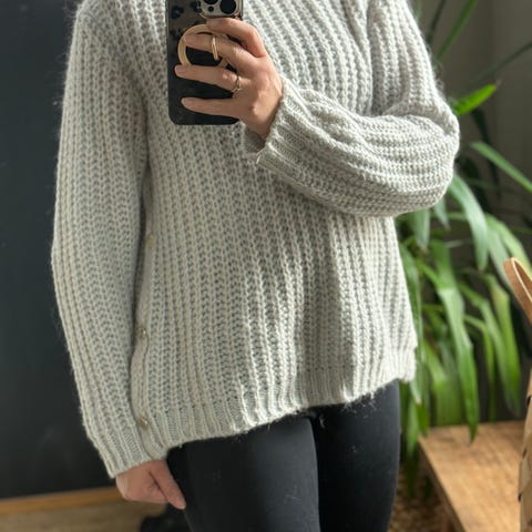 Pent brukt superfin strikkegenser fra Leveté Room i en herlig fresh rosafarge. Som har lange, noe løsere ermer med høy ribbestrikket mansjett og lav skuldersøm. Genseren har høy, ribbestrikket hals og en avslappet passform