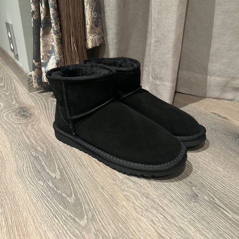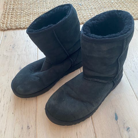 Helt nye UGG-inspirerte boots i grå farge. Mykt og varmt fôr på innsiden, som muligens er en blanding av syntetisk og ull! De er behagelige å gå med og perfekte til høst/vinter. Litt små i størrelsen, men for meg som bruker 42 passer disse godt!