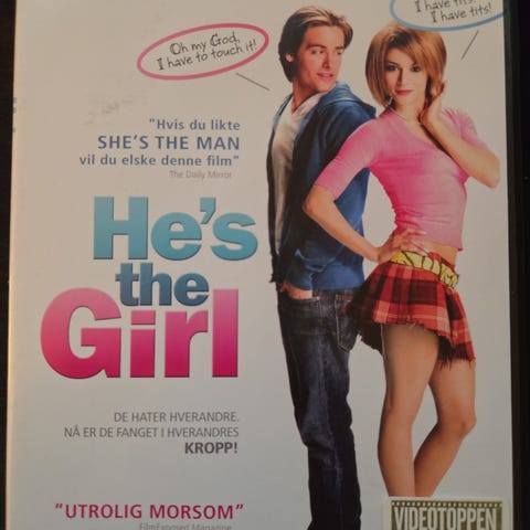 DVD av filmen She's the Man. Inneholder en komedie der hovedpersonene inkluderer Amanda Bynes som spiller en karakter som utgir seg for å være sin tvillingbror for å spille fotball.