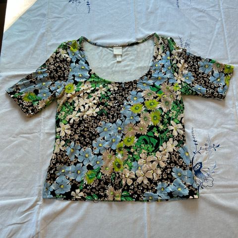 Søt sommerlig t skjorte I bomull fra HM. Størrelse M. Kjøpt I fjor sommer og kun brukt én gang. Ingen bruksmerker.