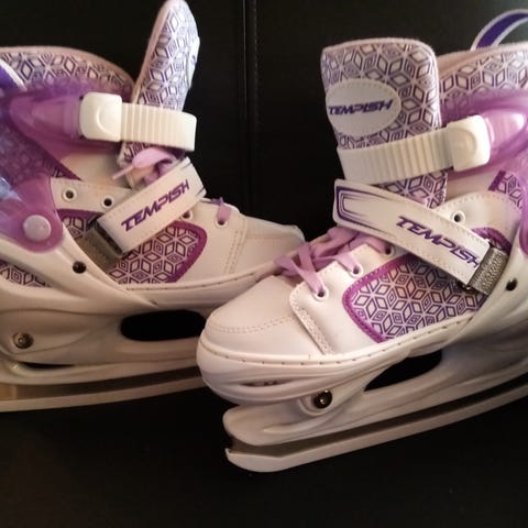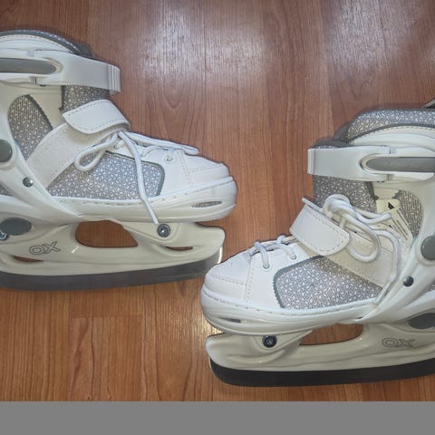 Regulbare skøyter str 30-33 selges rimelig. Kun brukt en sesong i noen måneder. Like pene som nye. Kjøpt nye i fjor.