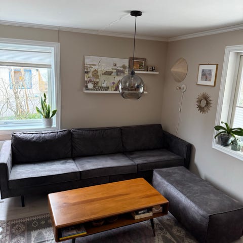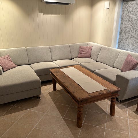 Godt brukt sofa selges. Mørk grå i fargen. Sofaen knirker litt under sjeselongen. Ellers mye sofa igjen. Gode puter, trekk som er avtagbare som kan vaskes!
