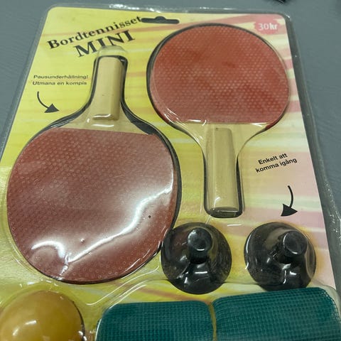 Bordtennisrack sett bestående av to rack med fargene grønn og oransje, samt en ball