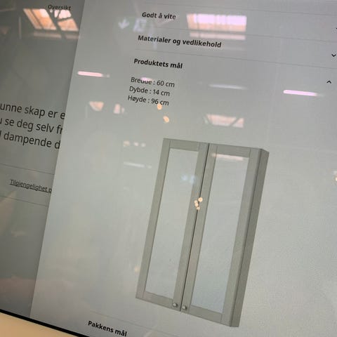 To helt nye baderomsskap fra Foss Bad til salgs. Grunnen til at vi selger de, er at de ikke passet inn i vårt totalrenoverte bad. Det så vi ikke før de var montert på veggen. (I rubrikken "Tilstand" står det "Uåpnet". Det er feil, men det går ikke an å skrive det riktige. De er pakket ut av emballasjen, men ikke brukt.) Dybde: 17,8 cm. (Det går ikke an å skrive 17,8 cm i rubrikken "Dybde", derfor står det 18 cm der.) Prisen på kr. 2300,- er tilsammen for begge skapene, og det er mindre enn halv pris av det vi betalte. Vi ønsker først og fremst å selge begge samlet, men kan selge de enkeltvis. Prisen blir da kr. 1200,- pr. stk.