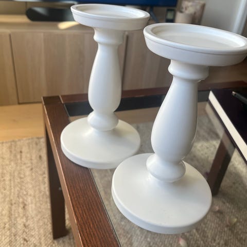 IKEA lysestaker sett i metall med lys grå farge. Settet består av tre lysestaker i ulike høyder, egnet for stearinlys.