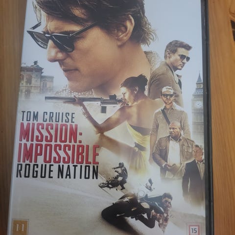DVD-utgave av filmen Mission: Impossible Rogue Nation med Tom Cruise. Inneholder filmen i standardformat.