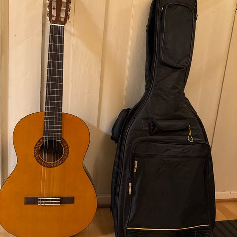 Gitaren er så godt som ubrukt – kun spilt litt på, og har ellers hengt til pynt. Kjøpt i sommer.