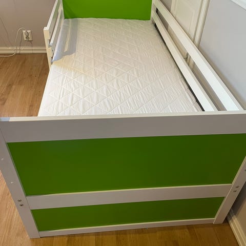 Alt virker som det skal og sengen er lite brukt. Det er noen flekker på madrassen. Mulig dette kan vaskes vekk, vi har ikke prøvd.